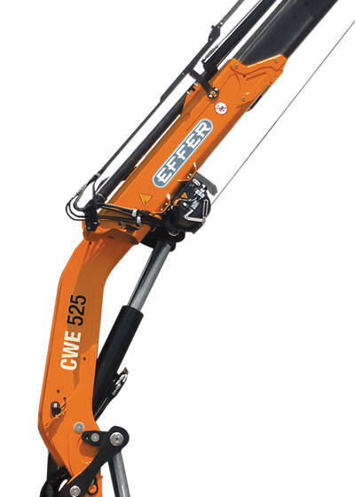 Les stabilisateurs des grues CWE 525, avec le système de traverse croisées donnent au châssis de la grue une résistance incomparable à la torsion en maintenant les dimensions compactes lors du transport. Les vérins de stabilisation, robustes à débattement important, facilitent à maintenir la grue sur un terrain très irrégulier.