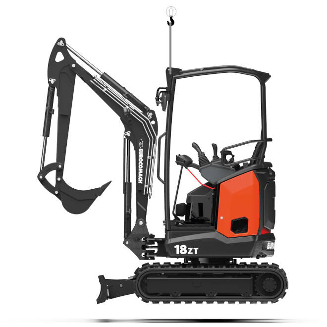 Le 18ZT est idéal pour travailler dans des espaces restreints, grâce à son zéro déport arrière avec châssis élargi qui fait 1.300 mm de largeur.